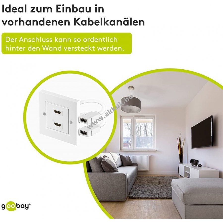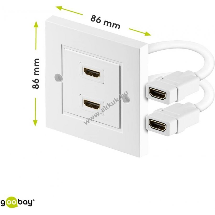 Goobay HDMI fali aljzat 2x HDMI (Typ A) csatlakozóval az esztétikus és rendezett falba épített HDMI-vezetékezéshez.