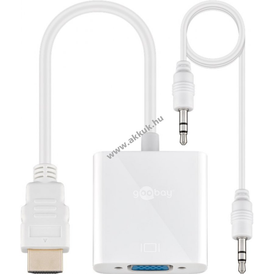 Goobay adapter laptop vagy PC és külső kijelző csatlakoztatásához. Maximális képminőség és éles képátvitel. Masszív kialakítás és minőségi anyagok a színhelyes megjelenítésért. 1080p 60 Hz Full HD felbontás támogatása külső kijelzőn. HDMI jelet analóg VGA jellé alakít. Alkalmas projektorok, LCD monitorok és TV-k csatlakoztatására. Hangátvitel 3,5 mm-es jack kábellel. Szabványos, pontosan illeszkedő fém érintkezők biztosítják a hibátlan jelátvitelt, tiszta hangot és éles képet. Kompakt méret a könnyű szállításhoz.
