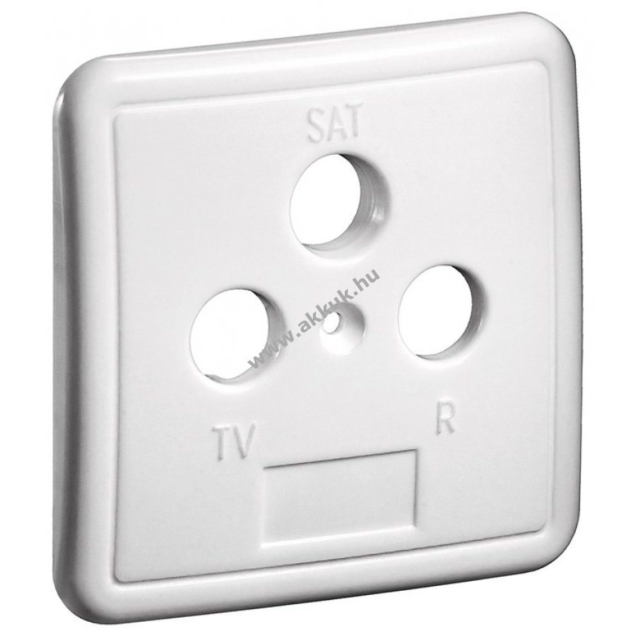 Fehér színű antennaaljzat fedlap 3 lyukkal univerzális használatra. Kompatibilis számos kapcsoló- és síkfelületi rendszerrel. Alkalmas átvezető és végzáró aljzatok takarására. A csomag tartalmazza a rögzítő csavart.