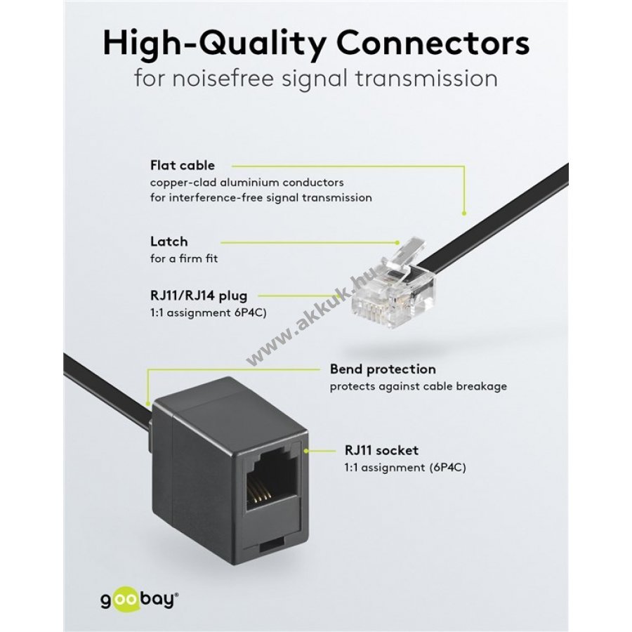 - lapos kábel a kényelmes hosszabbításhoz telefonhoz, faxhoz, modemhez, routerhez, DSL-hez, VDSL-hez, ISDN-hez és internethez