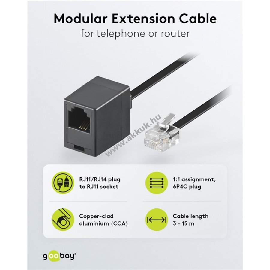 modular- / westernkabel fekete 3mmm Goobay Szavatosság (további részletek) 4040849682599