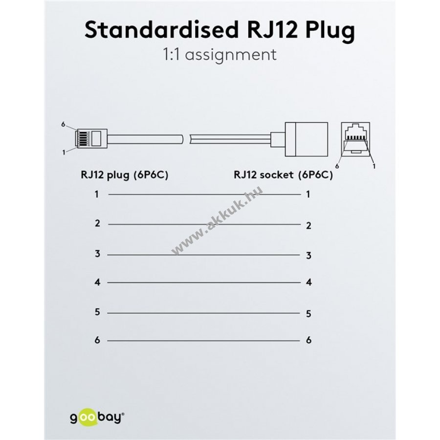 Telefonkábel kiváló jelátvitelhez és stabil kapcsolathoz. Minőségi belső vezetők fém érintkezőkkel és masszív PVC burkolat jellemzi. Egyszerű használat analóg és digitális eszközök, valamint RJ12 aljzattal rendelkező csatlakozók között. Ideális telefon, fax, modem, router, DSL, VDSL, ISDN és internet kapcsolat bővítéséhez. 2x RJ12 csatlakozóval szerelt lapos kábel. Robusztus RJ12 aljzat és 6 pólusú RJ12 moduláris csatlakozó reteszelővel. Magas minőségű, rézzel bevont alumínium vezető tiszta jelátvitelért. Tartós PVC burkolat védi a kábelt a sérülésektől. Szabványos RJ12 csatlakozók 1:1 bekötéssel (6P6C).