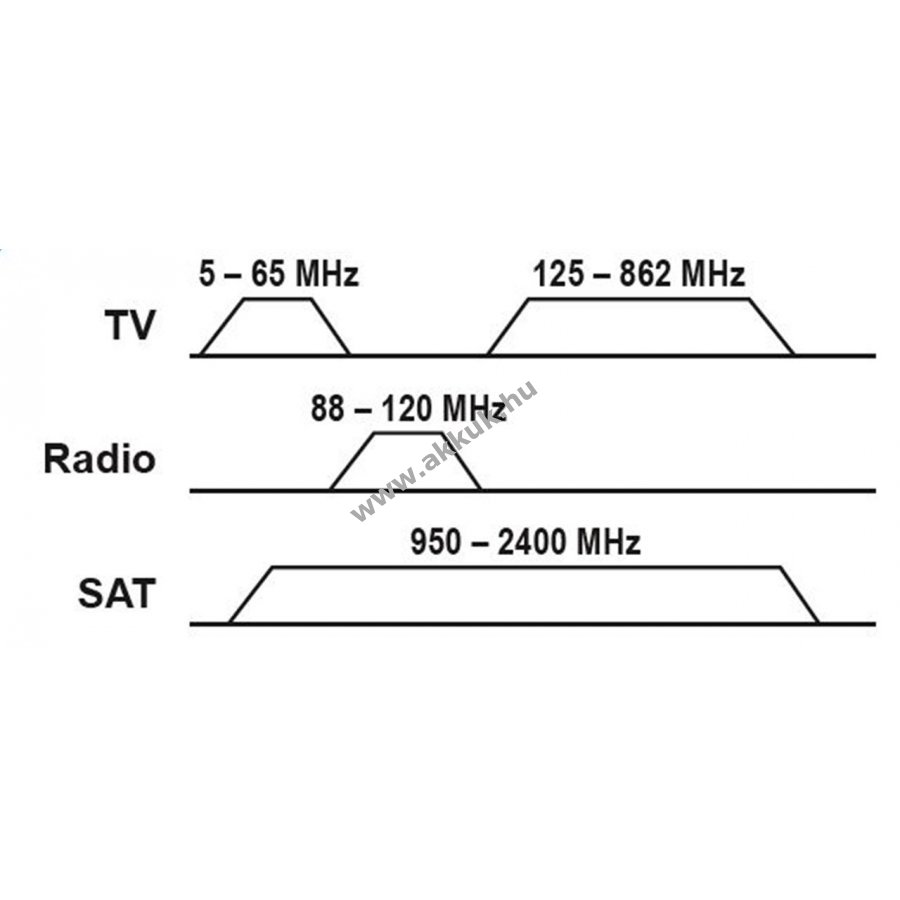 Antenna aljzat BK rendszerekhez rádióhoz SAT-hoz kábeltévéhez és DVB-T-hez Sat aljzat visszirány támogatással Antenna csatlakozó multischalter vagy LNB csatlakoztatásához Felületre és falba szereléshez 950 MHz - 2400 MHz SAT 88 MHz - 120 MHz rádió Hullámellenállás 75 Ohm
