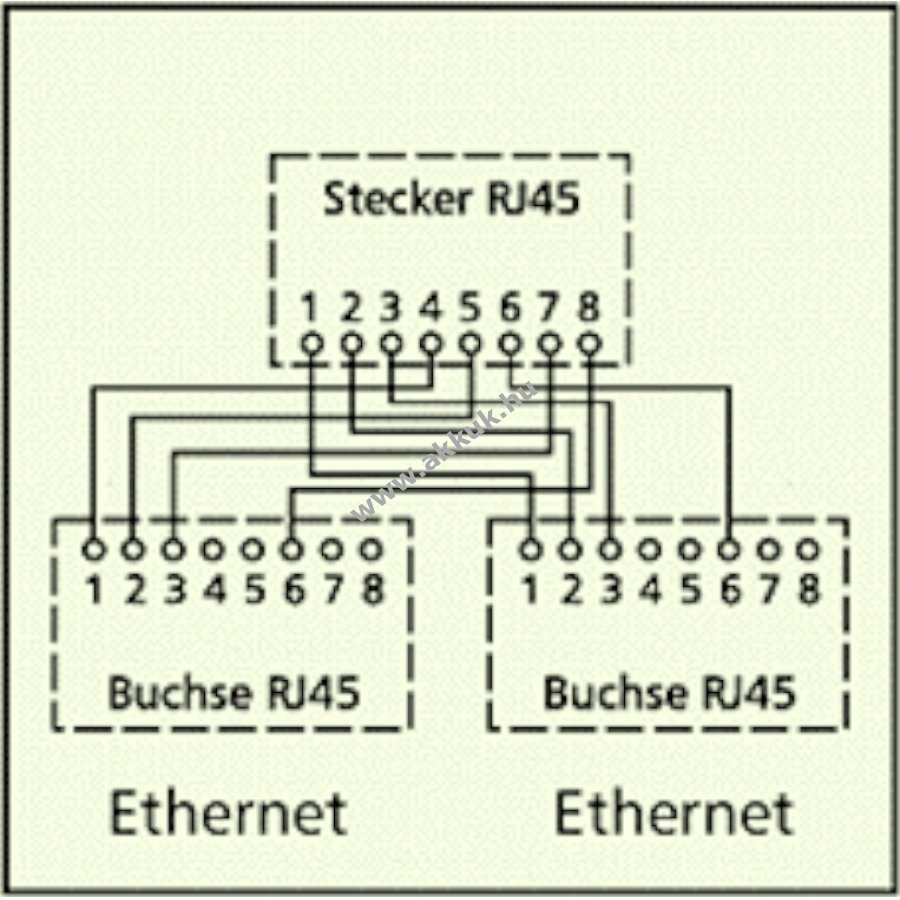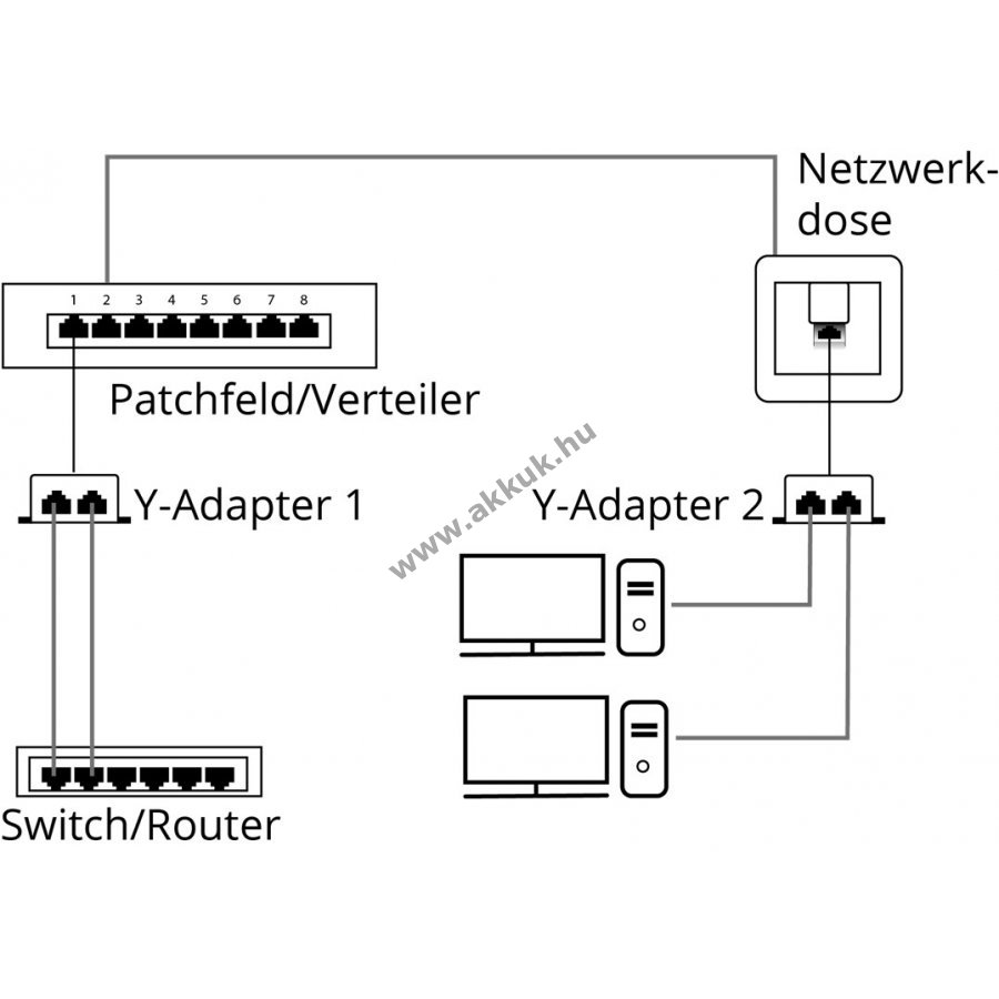 Kábelmegosztó adapter két 4-eres Ethernet kapcsolat egyidejű használatához egy 8 eres telepítőkábelen. Lehetővé teszi két Ethernet vonal egy CAT kábelben történő továbbítását. RJ45 portduplázó strukturált hálózati kábelezéshez. FTP árnyékolással ellátott. Csatlakozók: 1x RJ45 dugó és 2x RJ45 aljzat (2x PIN 1-2-3-6). Mindig párban használandó: egy adapter a csatlakozóaljzaton, egy a elosztón. Fém ház a tartósságért. Csak Fast Ethernet (10/100 MBit) kompatibilis. Nem használható Gigabit vagy PoE hálózatokhoz.
