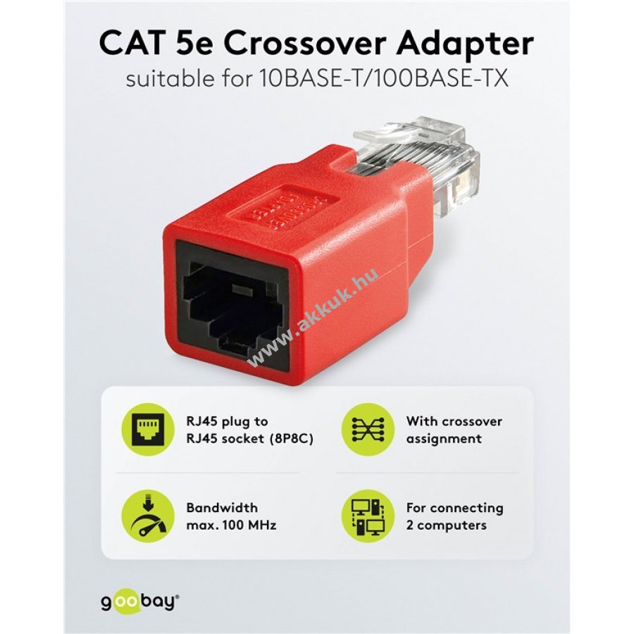 Keresztbe kötött RJ45 csatlakozó a patchkábelek átalakításához crossover kábelként