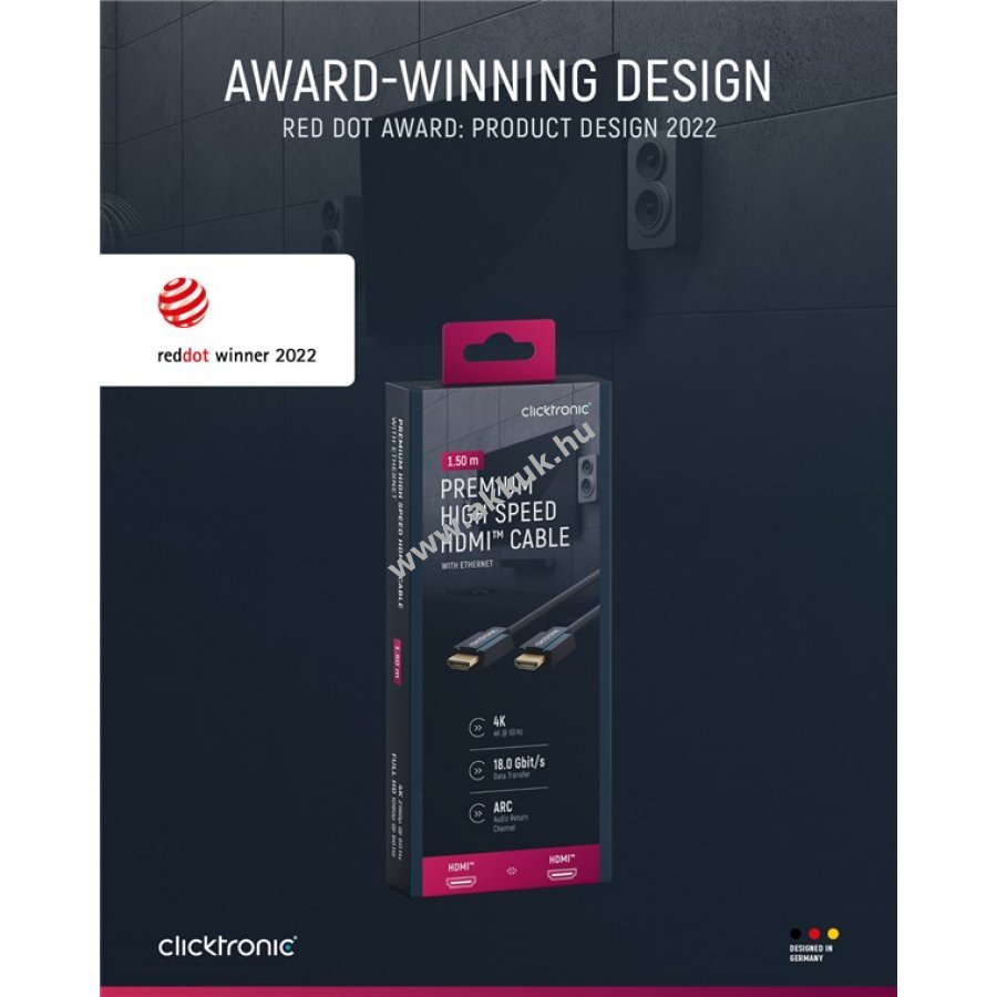 A Clicktronic HDMI kábel kiváló tartósságot és stabilitást kínál 10 év garanciával. A háromrészes PVC és ABS csatlakozó szerkezet megvédi a kábelt a töréstől. 24 karátos aranyozott csatlakozók és tiszta réz vezetők biztosítják a tökéletes hang- és képátvitelt.
