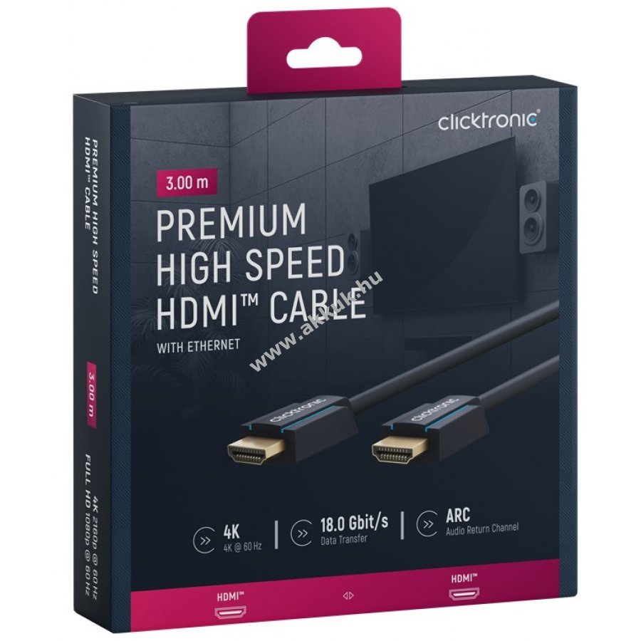 A Clicktronic HDMI kábel tartósságra és stabilitásra készült 10 év garanciával. A háromrészes PVC és ABS csatlakozó szerkezet védi a kábelt a töréstől. A 24 karátos aranyozott csatlakozók és tiszta réz vezetők garantálják a kiváló hang- és képminőséget. Tökéletes otthoni mozihoz és játékhoz.