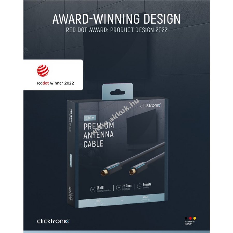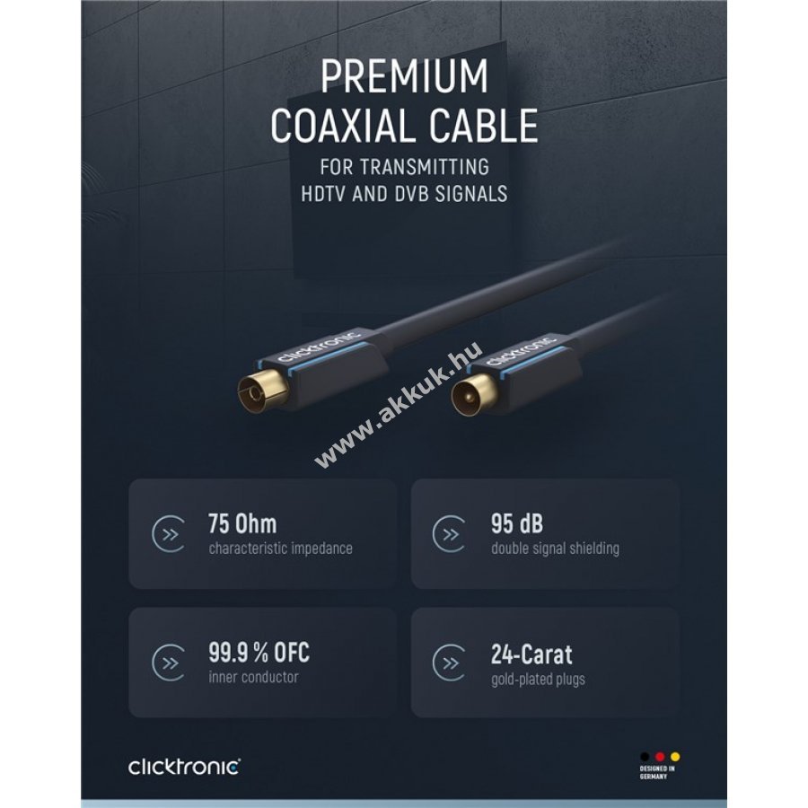 Clicktronic koaxiális kábel hosszú élettartamra és stabilitásra tervezve 10 év garanciával.