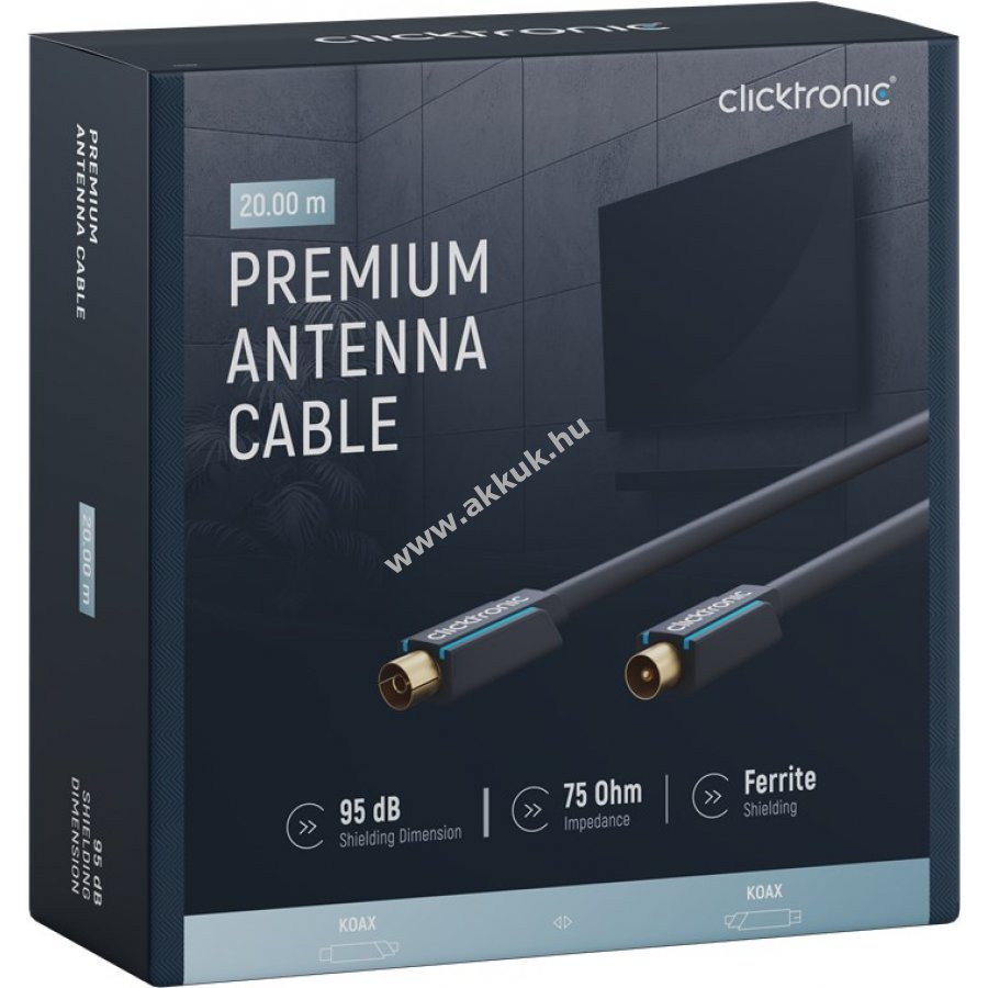 A Clicktronic koaxiális kábel hosszú élettartamra és stabilitásra tervezett. 10 év garanciát kínálunk antennakábeleinkre. A márkára jellemző kialakítás rendkívül ellenállóvá teszi a kábelt. A háromrészes PVC és ABS csatlakozó szerkezet megvédi a kábelt a hirtelen meghúzásoktól, így ideális a kábel törése ellen. A magas minőségű aranyozott csatlakozók és tiszta réz vezetők gyors adatátvitelt biztosítanak. A strapabíró PVC külső burkolat hosszú távon stabil kapcsolatot garantál.
