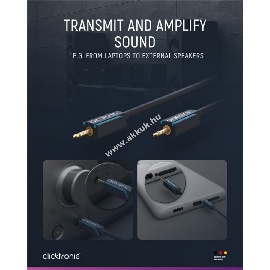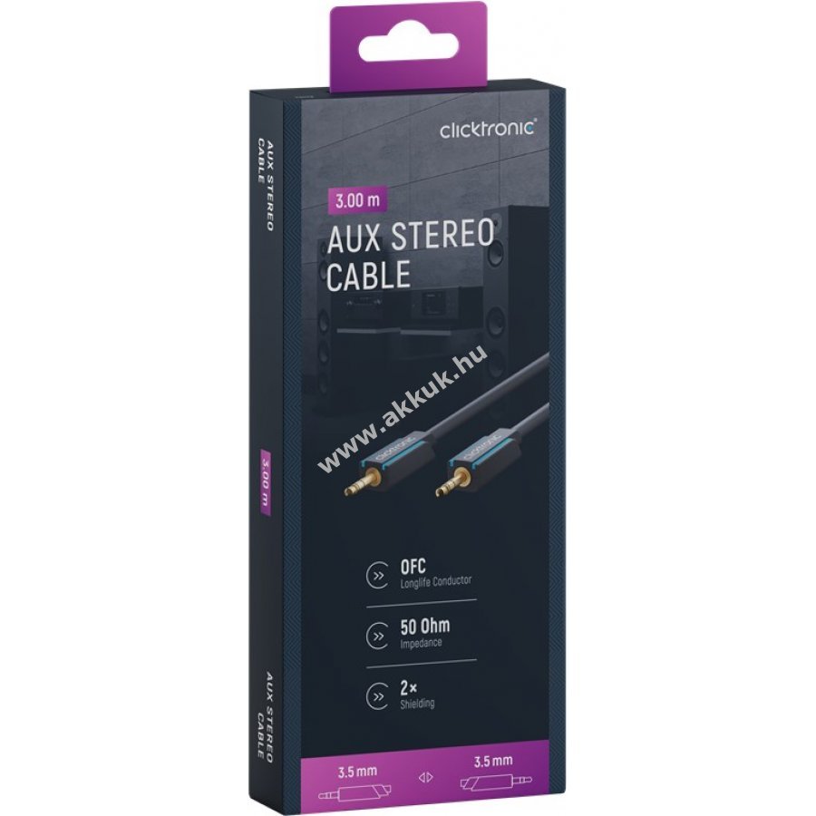Clicktronic prémium minőségű 3,5 mm sztereó AUX kábel tartós és stabil kivitelben 10 év garanciával.