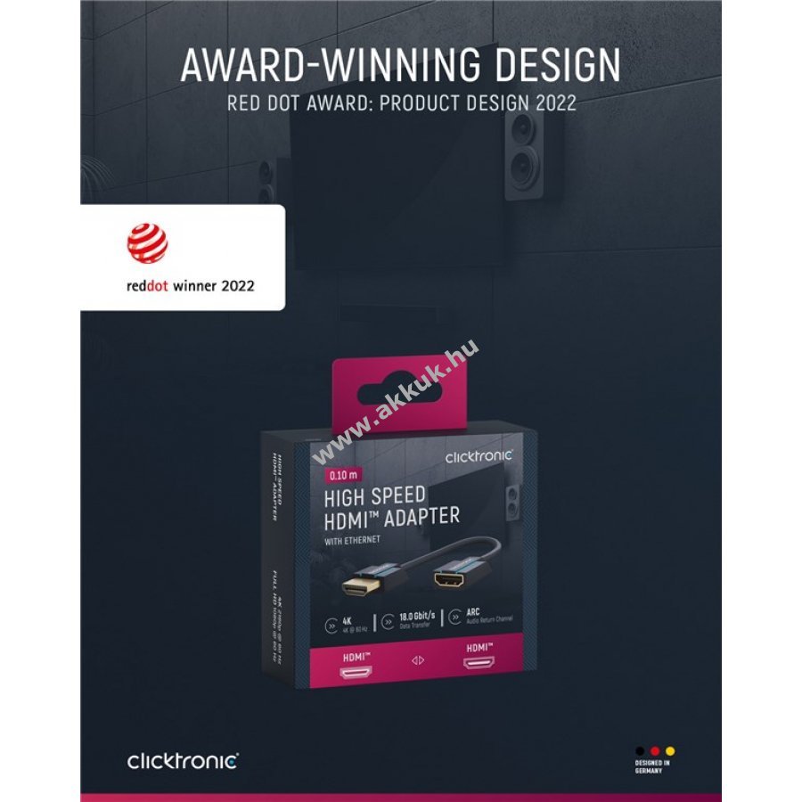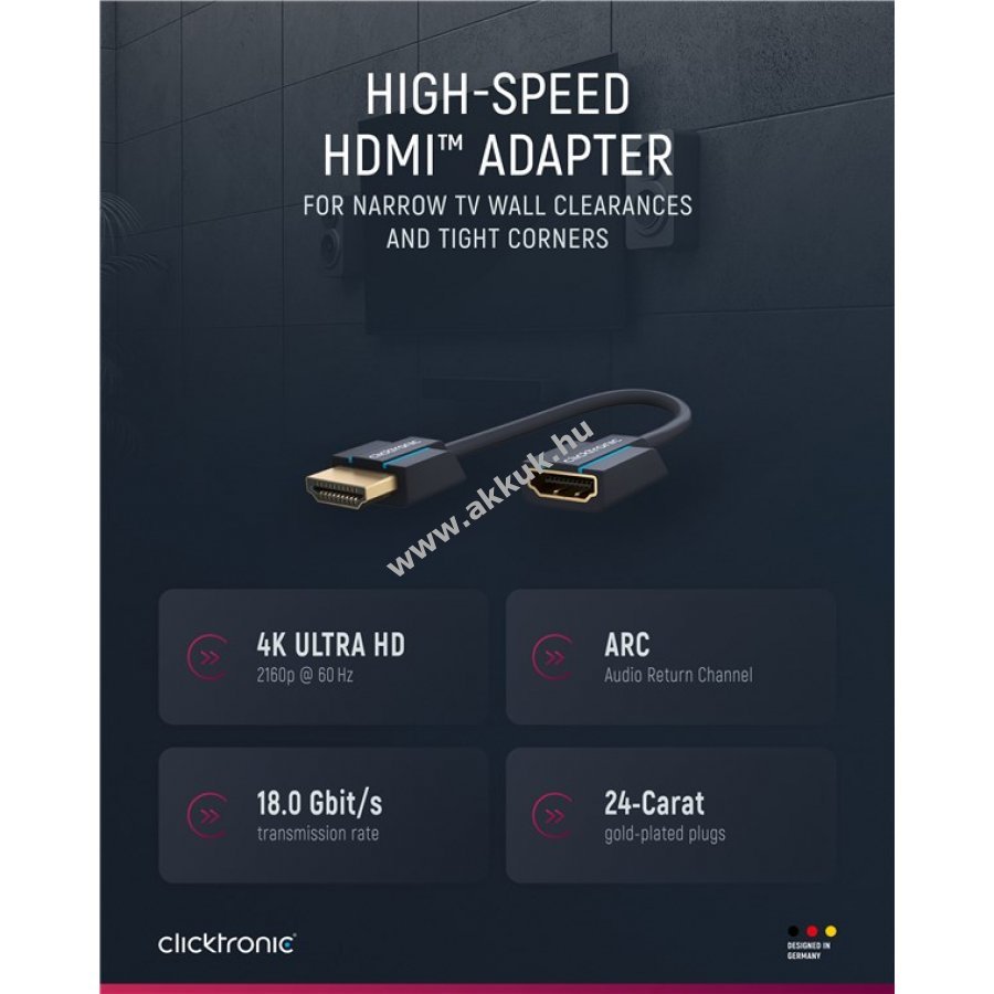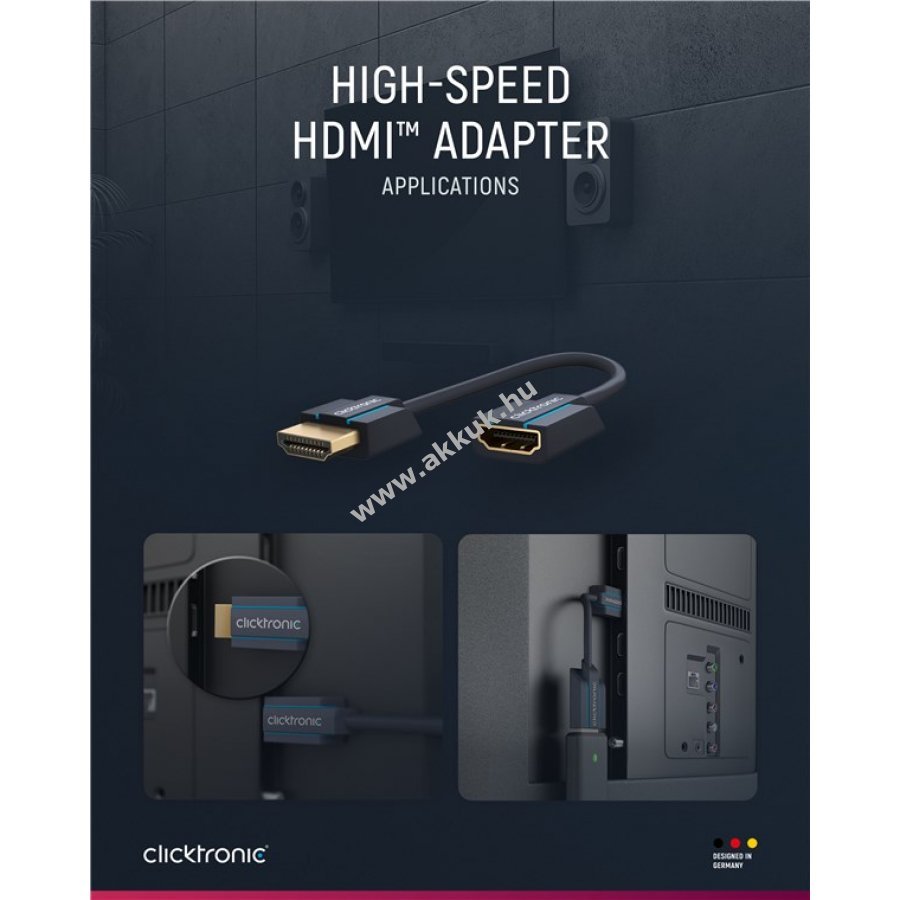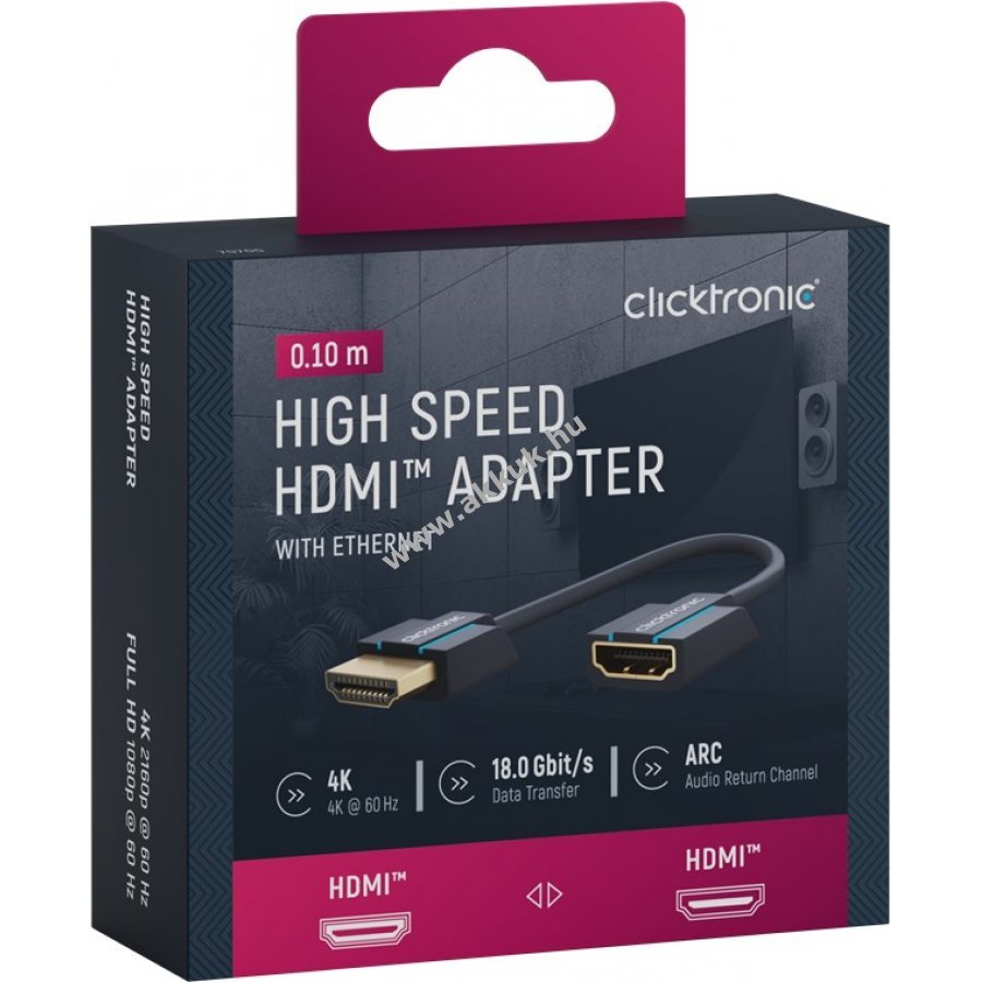 Kifejezetten szűk helyekhez és szoros sarkokhoz tervezett HDMI adapter 0,1 m hosszban. Megakadályozza a kábel törését a szorosan illeszkedő csatlakozóknál. Támogatja a digitális 3D és HD videókat valamint többcsatornás hangot tiszta és nagy felbontásban hosszú távon megbízhatóan.