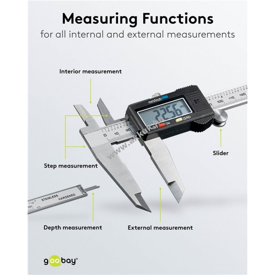 - Külső, belső, mélység és lépcsőmérés 0-300 mm tartományban