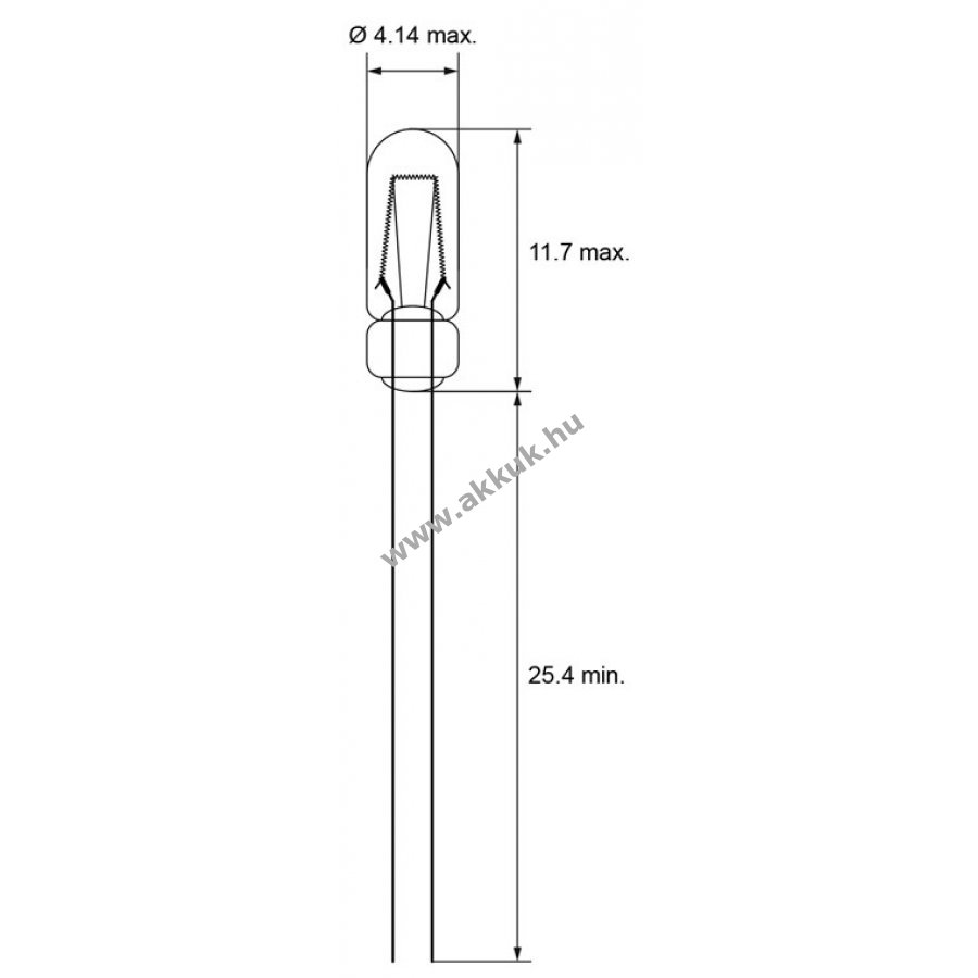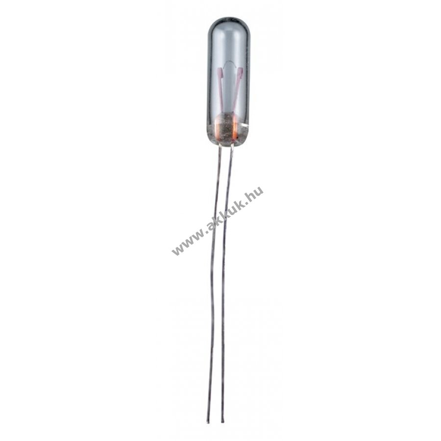 Melegfehér mikró izzó cső formában vezetékes végekkel. Jelzőfényként használható elektronikában és makettekben például vasútmodellekhez. C-2R szál, fejmagasság max 11,7 mm, fejátmérő max 4,14 mm, vezeték hossz min 25,4 mm.