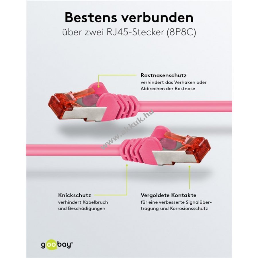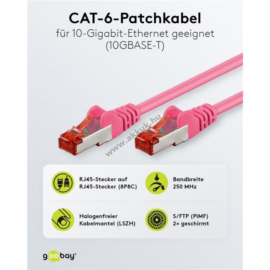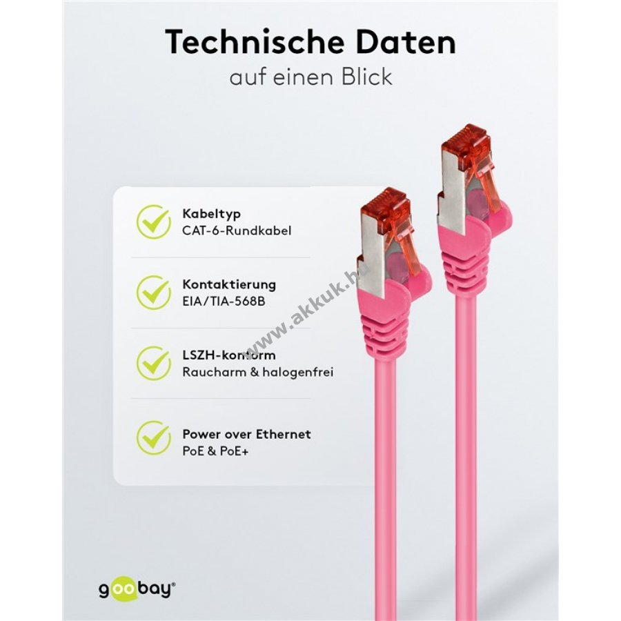 A Goobay CAT 6 patchkábel kiváló jelátvitelt és stabil kapcsolatot biztosít nagy sebességnél. Kiváló minőségű réz vezetőkkel és dupla árnyékolással rendelkezik a zavartalan adatátvitelért. Alkalmas 10-Gigabit Ethernet hálózatokhoz és PoE használathoz.