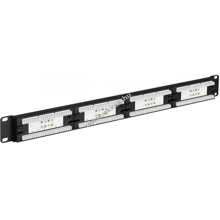 Tartós fém ház és árnyékolatlan RJ45 csatlakozók kiváló hálózati kapcsolathoz 24 porttal. Könnyű szerelés szerszám nélkül LSA technológiával. 19 hüvelykes méret rackbe vagy szerver szekrénybe szereléshez. CAT 6 kábelekhez 0,64 mm átmérőig. Számozott portok és TIA 568 A/B színkódolt csatlakozók a rendezett kábelkezeléshez.