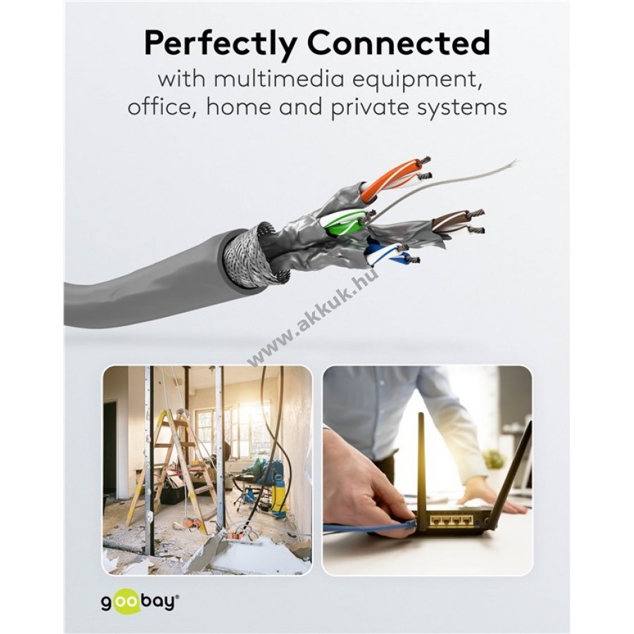 A Goobay CAT 6 kábel maximális minőségű és nagy sebességű jelátvitelt biztosít stabil kapcsolat mellett 8K 60 Hz és 4K 120 Hz felbontású képátvitelhez.