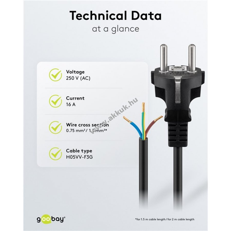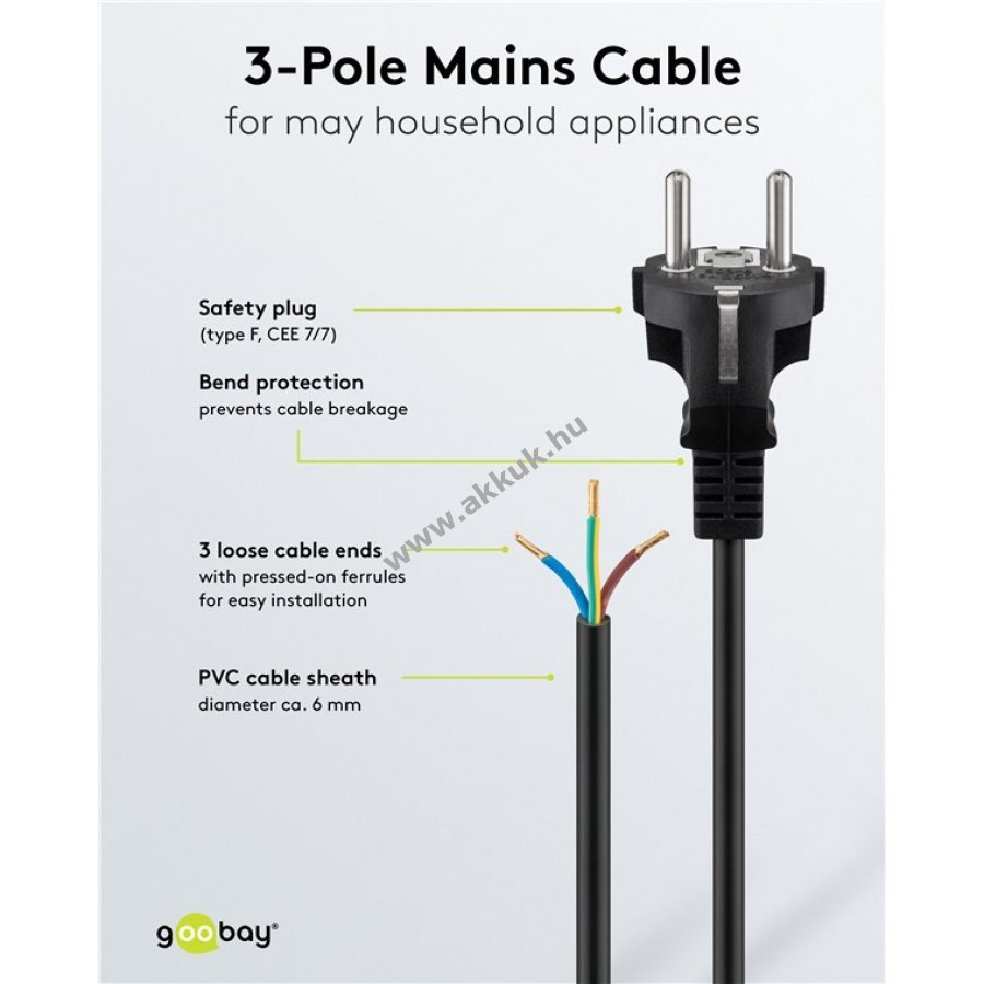 Védőérintkezős tápkábel nyitott kábelvégekkel és préselt érvéghüvelyekkel szerelve egyedi készítéshez. Elektromos készülékekhez csatlakoztatható kábel ideális irodai háztartási vagy garázs használathoz. Kreatív és sokoldalú felhasználásra alkalmas.