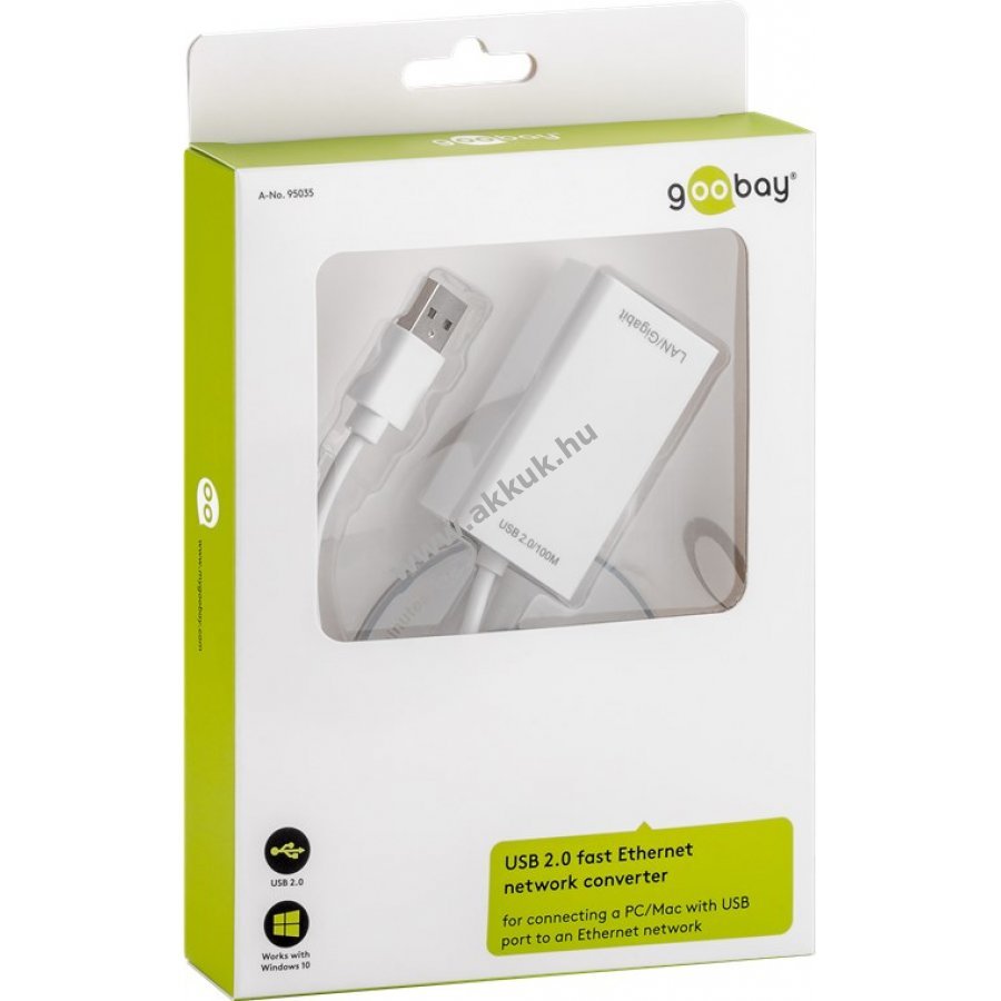 USB 2.0 adapter 10/100 Mbit/s teljes duplex hálózati kapcsolat létrehozásához számítógép USB-A portján keresztül