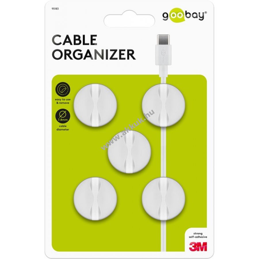 Egyszerű kábelrendezés irodába és otthoni íróasztalhoz. 5db-os csomag kábelrögzítővel, amelyek legfeljebb 7,8 mm átmérőjű töltő és USB kábelekhez alkalmasak. Öntapadós kivitelük révén közvetlenül asztalra, monitorra, TV állványra vagy polcra rögzíthetők. Rugalmas kábelvezetés megakadályozza a kábelek elcsúszását és összegubancolódását. Erős 3M ragasztófelület biztosítja az egyszerű felszerelést, a kábelrendezők pedig ragasztónyom nélkül eltávolíthatók.