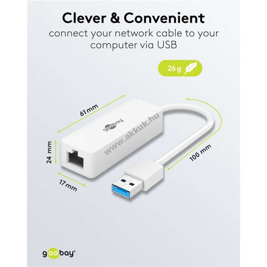 A vezetékes internet stabilabb kapcsolatot biztosít, mint a WiFi, de a laptopon nincs Ethernet port. Ez az USB-LAN adapter kényelmesen csatlakoztatja a számítógépet hálózati kábelhez. Ideális online játékhoz videóhíváshoz és streaminghez gigabit Ethernet sebességgel késleltetés és kapcsolatprobléma nélkül.