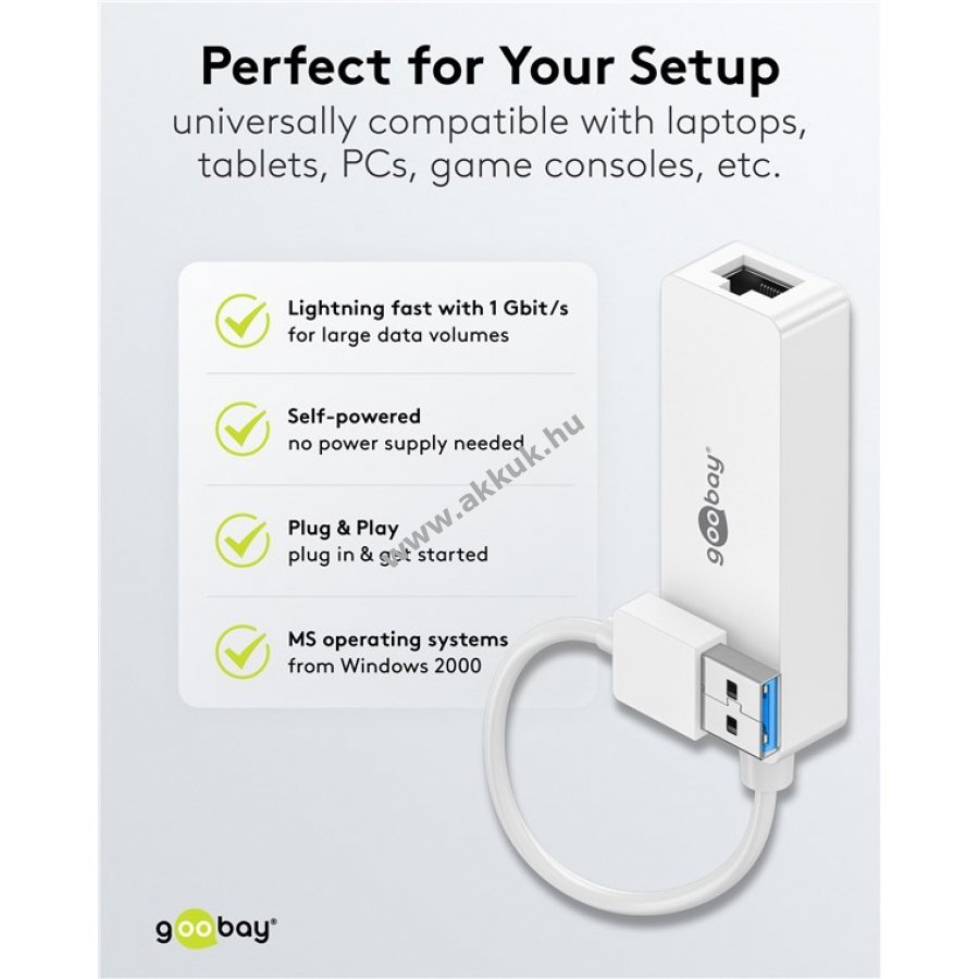- USB-A porton keresztül 10/100/1000 Mbit/s sebességű teljes duplex hálózati kapcsolat