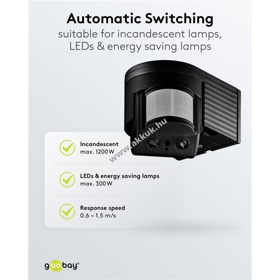 LED és energiatakarékos lámpákhoz 600 W-ig valamint izzólámpákhoz 1200 W-ig alkalmas.