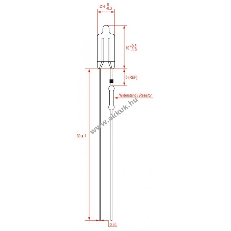 NE-2H típusú neon glimmizzó előellenállással és vezetékvégekkel 230 V-os hálózati feszültséghez előtét nélkül használható 95 V áttörési feszültséggel Jelzőfényként széles körben alkalmazható például világított kapcsolókban és ellenőrző lámpákban Magassága kb. 10 mm Vezetékvégek hossza kb. 30 mm
