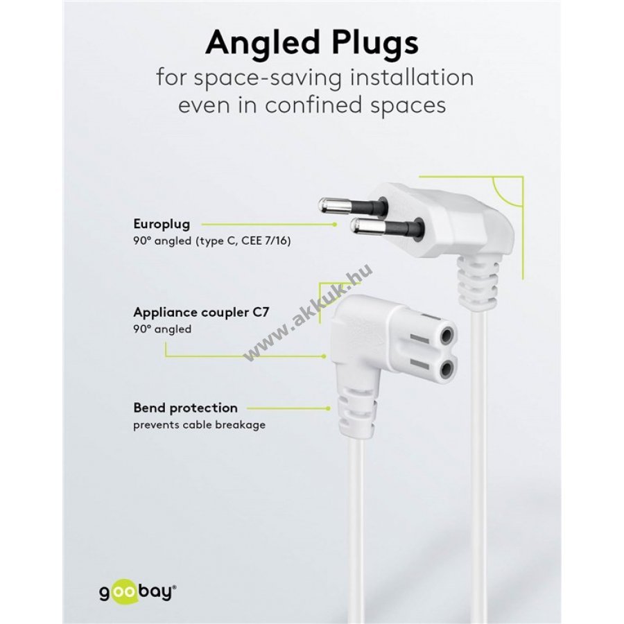Különösen helytakarékos hálózati kábel 90 fokos elfordított csatlakozókkal