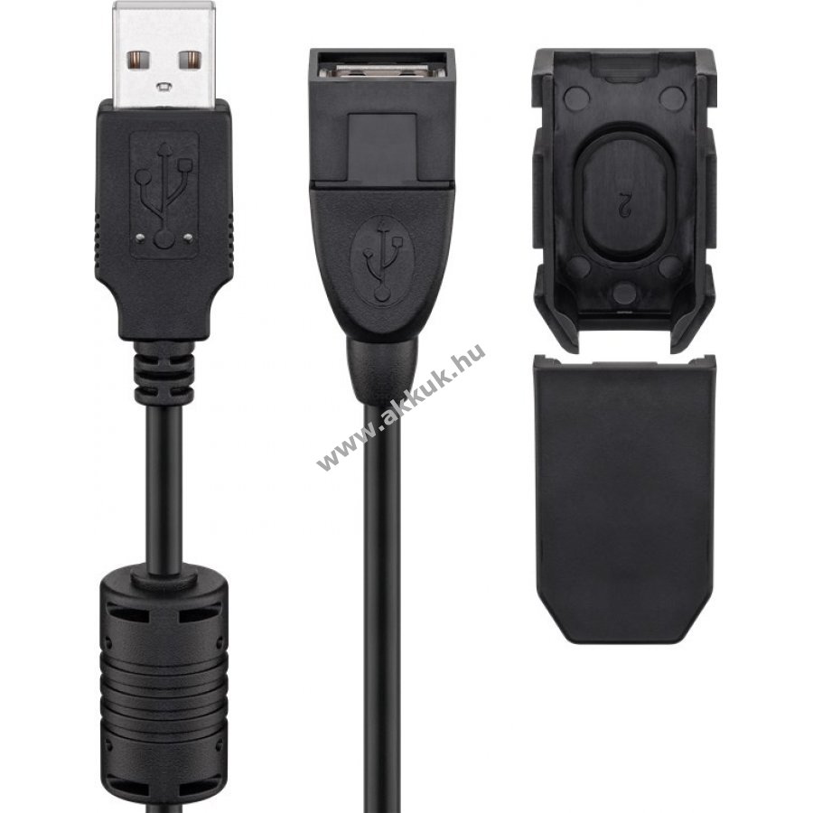 A biztonsági klip segítségével a csatlakoztatott kábel rögzíthető az USB aljzathoz. Különösen alkalmas nehezen hozzáférhető helyeken történő használatra. Ferritgyűrűvel a zavarok csökkentésére.