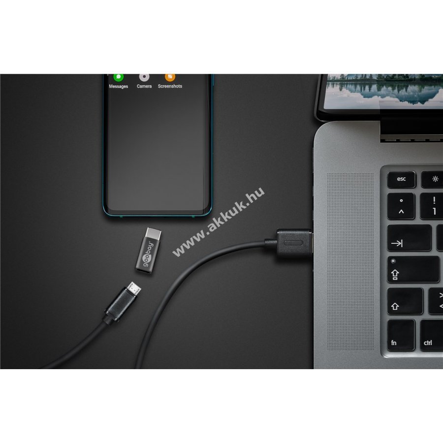 USB-Adapter Micro-USB kábel csatlakoztatásához USB-C aljzathoz például laptophoz vagy okostelefonhoz Kompakt kialakítású könnyen hordozható és utazáshoz ideális Átalakítja a Micro-USB csatlakozót USB-C-re így nem kell külön USB-C kábel USB 2.0 támogatás akár 480 Mbit/s adatátviteli sebességgel Támogatja a szinkronizálást adatátvitelt és 10 W-os töltést Kompatibilis Windows Android és Apple MacBook USB-C/Thunderbolt 4 porttal Plug & Play telepítés további illesztőprogram nélkül