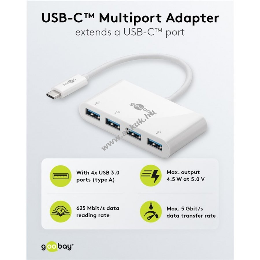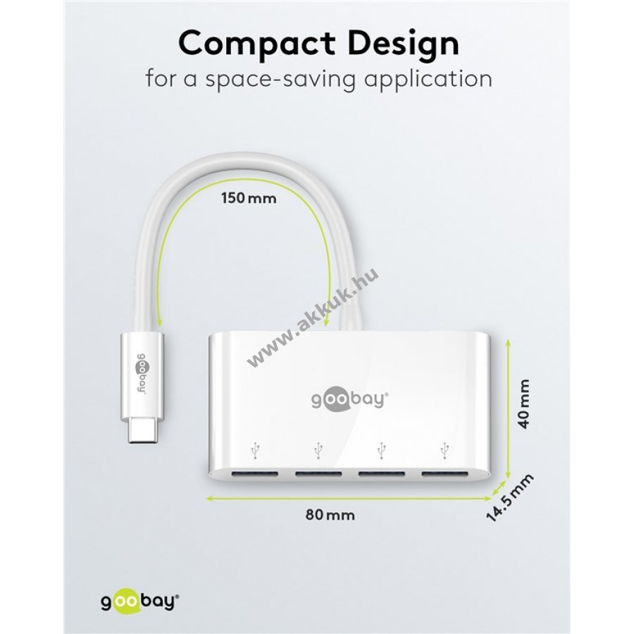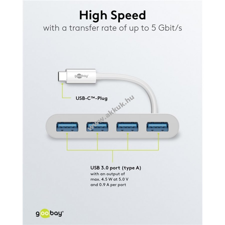 Négy USB-A csatlakozó gyors adatátvitelhez és töltéshez akár 5 Gbps sebességgel