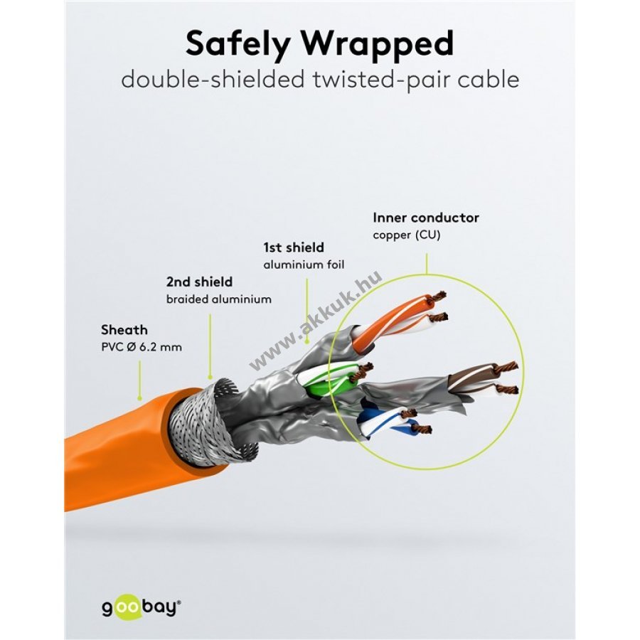 A Goobay CAT-kábelek maximális jelminőséget és nagy sebességet biztosítanak stabil hálózati kapcsolat mellett. Kiváló minőségű belső vezető, tartós kábelborítás és pontos csatlakozók jellemzik őket. Kifejezetten alkalmasak 8K 60 Hz és 4K 120 Hz felbontású képátvitelhez.