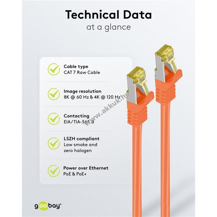 A CAT 6A S/FTP patchkábel kiváló minőségű belső vezetőkkel és masszív kábelborítással stabil és gyors hálózati kapcsolatot biztosít. 8K @ 60 Hz és 4K @ 120 Hz felbontású képátvitelre alkalmas.