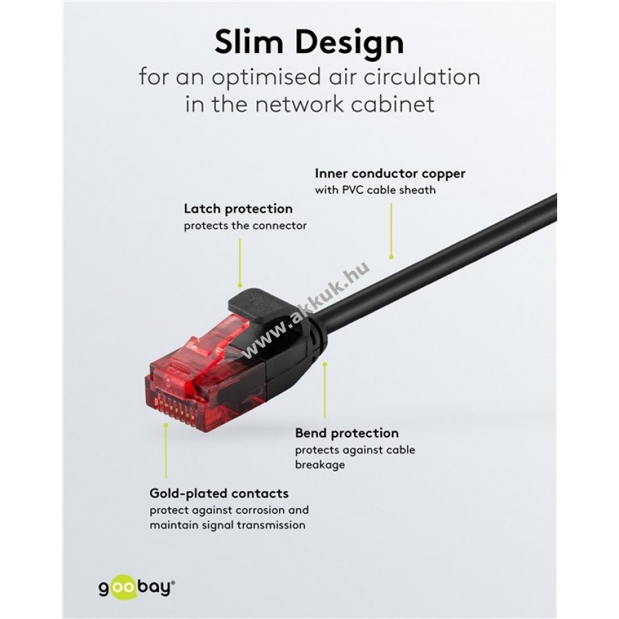 A Goobay SLIM hálózati kábel szűk helyekre és nagy eszközsűrűségű környezetekbe készült például szerver szekrényekbe és adatközpontokba. Kiváló minőségű és hatékony hálózati megoldást nyújt jobb légáramlással és hűtés teljesítménnyel.