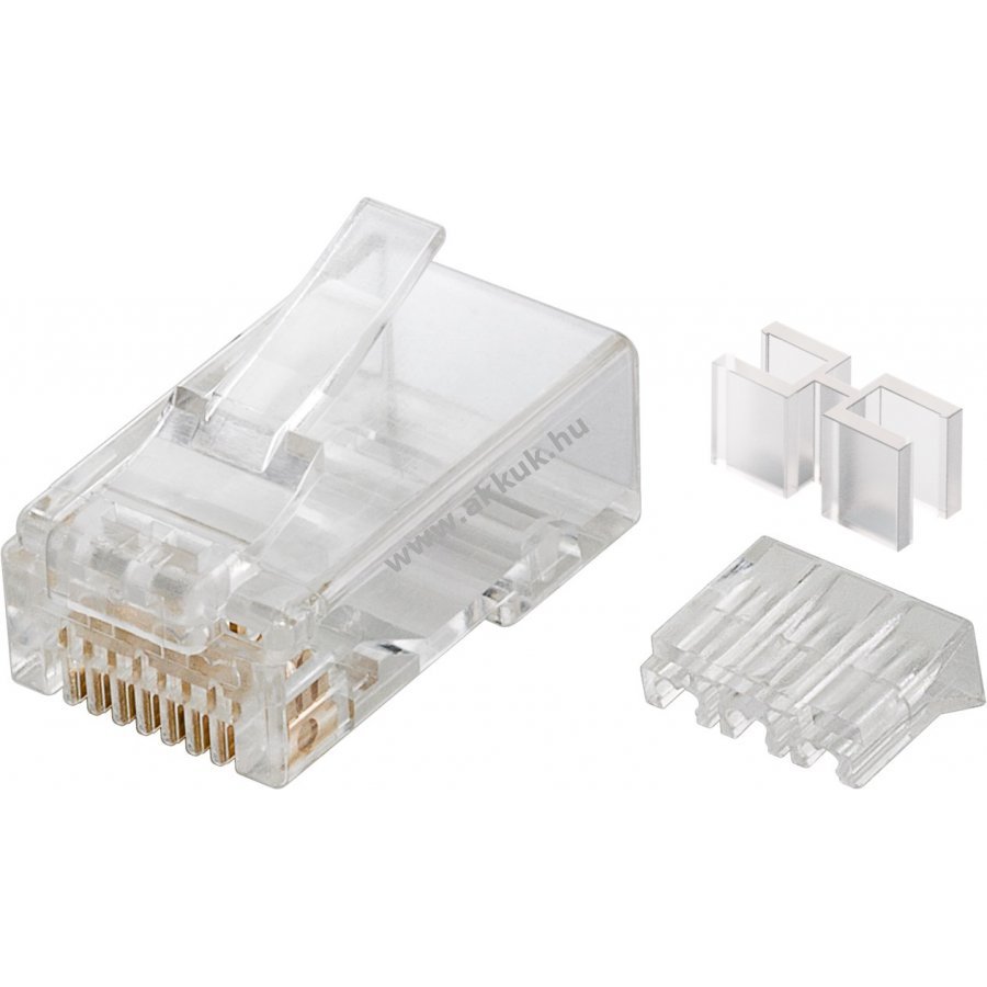 Árnyékolatlan RJ45 csatlakozó 6+2 érintkezős kialakítással.