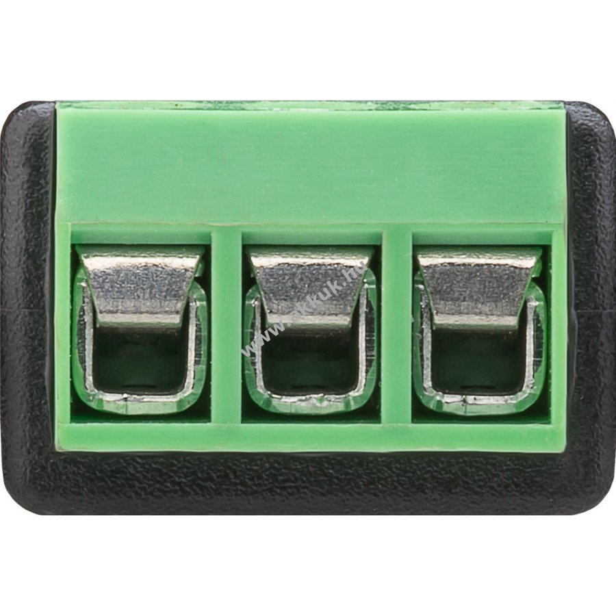 Minőségi anyagokból készült jelátvitel gyorsan és megbízhatóan. Masszív ház és pontosan illeszkedő nikkelezettttttt érintkezők biztosítják a stabil kapcsolatot. 3 tűs terminálblokk csavaros rögzítéssel egyedi beépítési megoldásokhoz. 3,5 mm sztereó jack dugó aranyozott érintkezőkkel és 5,0 mm érintkező távolsággal. Ideális teszteléshez, audio hobbi projektekhez, riasztástechnikához és AV rendszerekhez. Kábelvégek gyors bekötéséhez alkalmas.