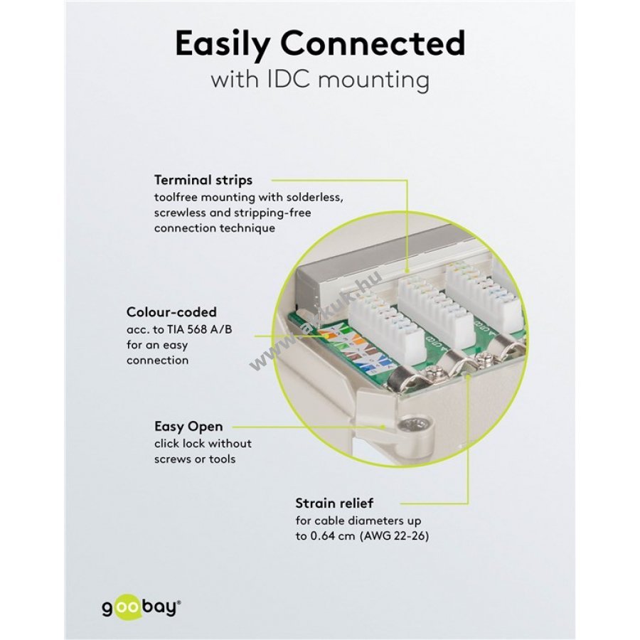 Kompatibilis 0,64 mm átmérőjű kábelekkel (AWG 22-26)