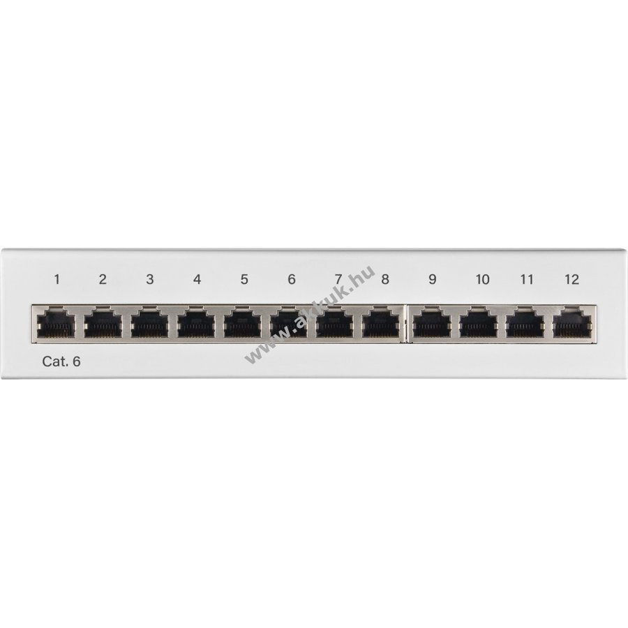 Masszív fém ház árnyékolt RJ45 csatlakozókkal a kiváló kapcsolatért 12 portos kivitelben.
