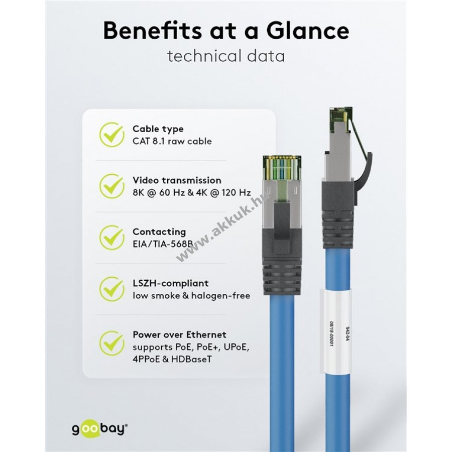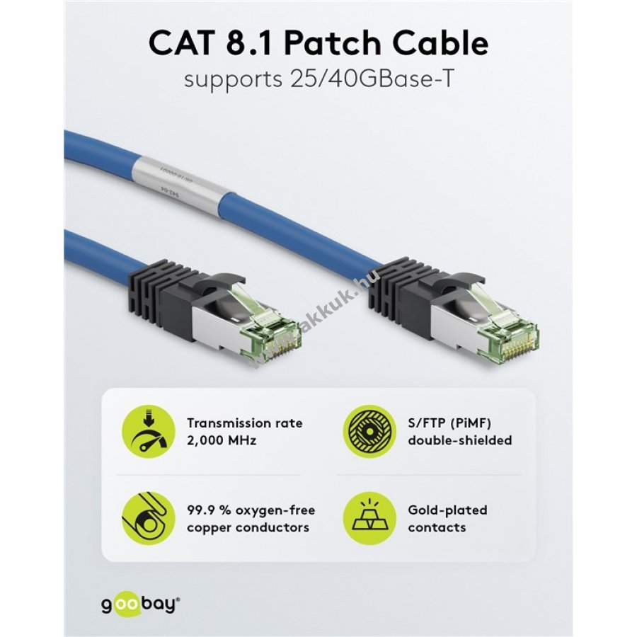 Kiváló minőségű CAT 8.1 patchkábel stabil és gyors adatátvitelt biztosít akár 2 GHz sávszélességgel. Ideális 8K @ 60 Hz és 4K @ 120 Hz felbontású képátvitelhez kifejezetten játék konzolokhoz és nagyfelbontású hálózatokhoz. 99,9% oxigénmentes réz belső vezetővel és halogénmentes külső burkolattal készült.