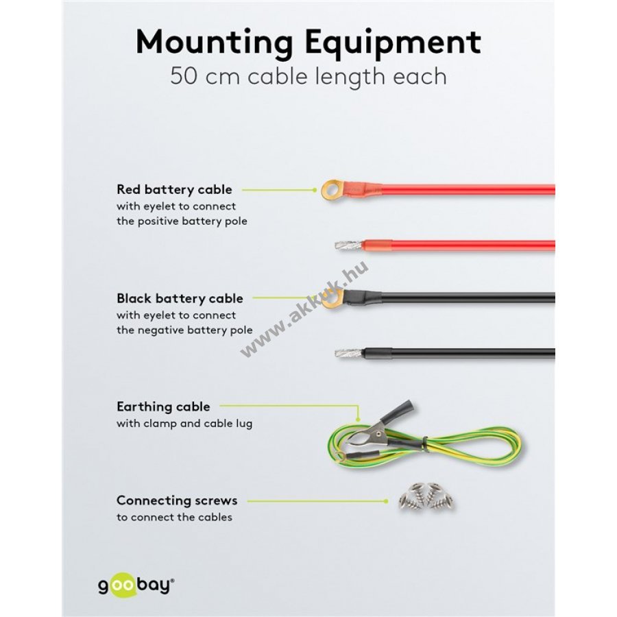 Az autó akkumulátorához két darab kábellel csatlakoztatható.