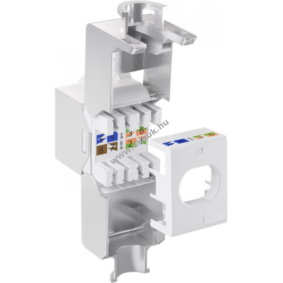 A Keystone rendszer rugalmasságot biztosít a telepítésben moduláris csatlakozórendszerével standard csatlakozókhoz és 14,9 x 17,0 mm-es modulhelyekhez. A Snap-In rendszer különböző csatlakozási technikákat tesz lehetővé például IEC vagy F csatlakozós koaxiális aljzatokhoz, RJ45 aljzatokhoz (CAT 5, CAT 6, CAT 6A), hangszóró csatlakozókhoz, USB, LWL és HDMI aljzatokhoz. Az RJ45 beépíthető aljzat masszív cinköntvény házzal rendelkezik a stabil jelátvitel érdekében. A LAN aljzat STP árnyékolással biztosítja a zavartalan jelátvitelt. Elsősorban hálózati telepítésekhez és fix hálózati kábelek készítéséhez használatos. Ethernet aljzat beépítésre Keystone patchpanelekbe és hálózati aljzatokba. Alkalmas 10 Gigabit Ethernet és IEEE 802.3at szabvány szerinti PoE+ alkalmazásokhoz. A CAT 6A kábelekhez mezőben szerelhető RJ45 aljzat. Az RJ45 csatlakozók TIA 568A/B színkódolásúak.
