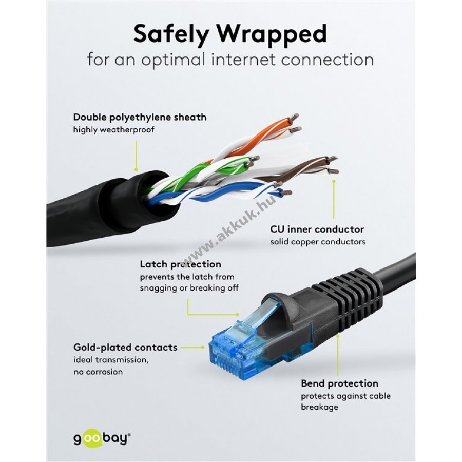 A Goobay kültéri hálózati kábel ideális kültéri telepítéshez például kertben kempingezéshez épületfalakon balkonon és biztonsági kamerák csatlakoztatásához