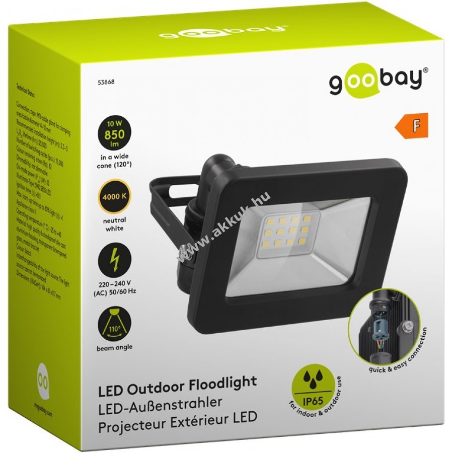 A 110°-os széles fényeloszlás kertvilágításhoz vagy homlokzatok megvilágításához alkalmas