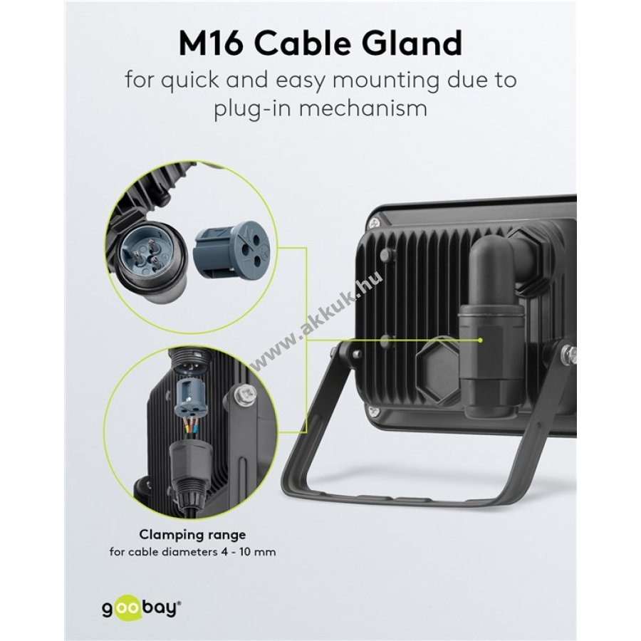 Gyors és egyszerű szerelés az M16 kábelcsatlakozóval, amely 4-10 mm kábelátmérőhöz alkalmas.