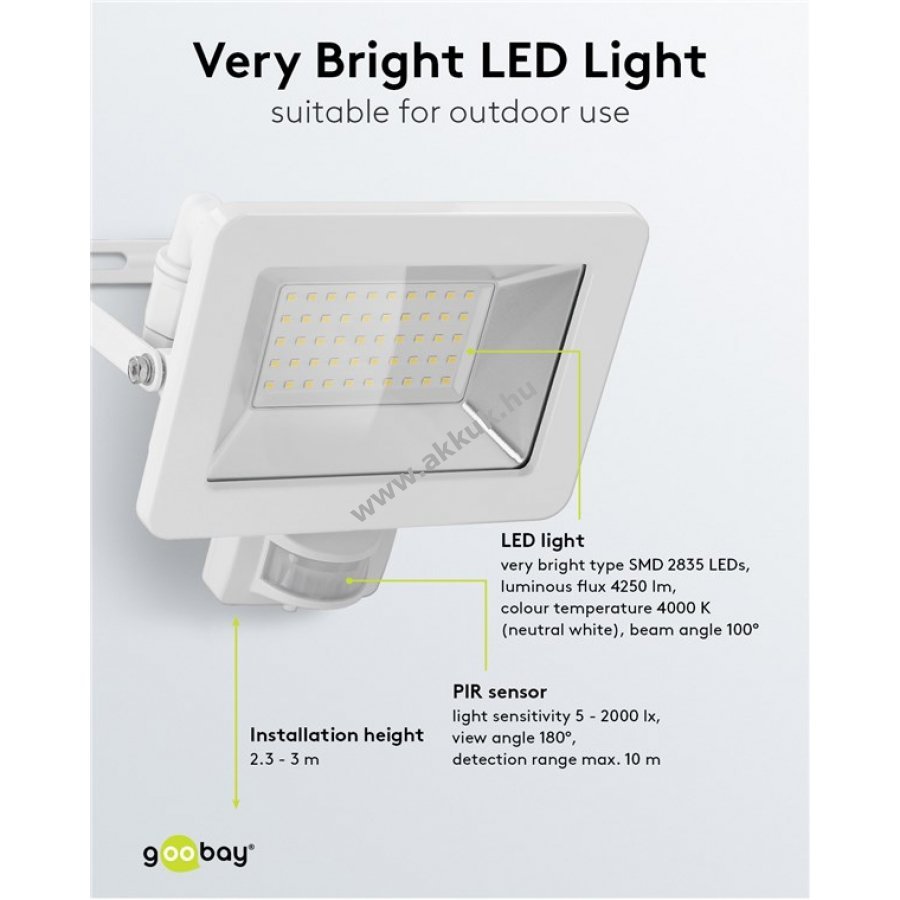 Nagyon világos és funkcionális LED reflektor kompakt kialakítással bejáratokhoz garázsokhoz kocsibeállókhoz homlokzatokhoz és járdákhoz Ideális kerti világításként