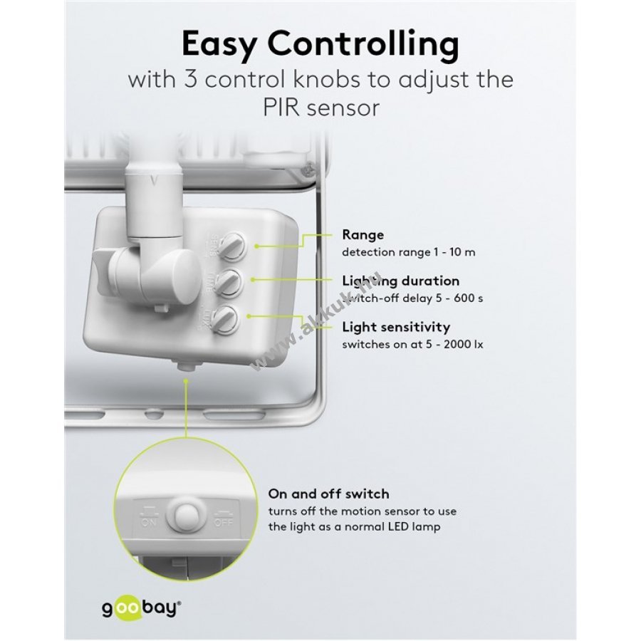 Mozgásérzékelő be- és kikapcsolható így normál kültéri LED világításként is használható