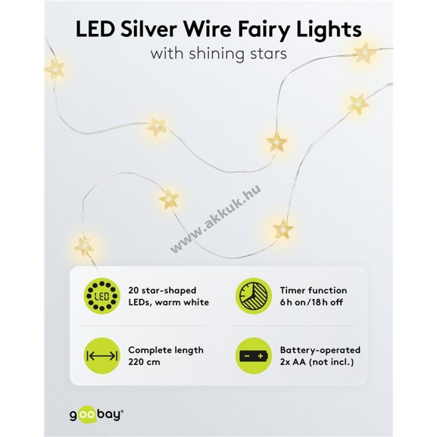 Biegyes ezüstdrót fényfüzér csillag alakú LED-ekkel kellemes hangulatot teremt hálószobában vagy gyerekszobában és ünnepi alkalmakon.
