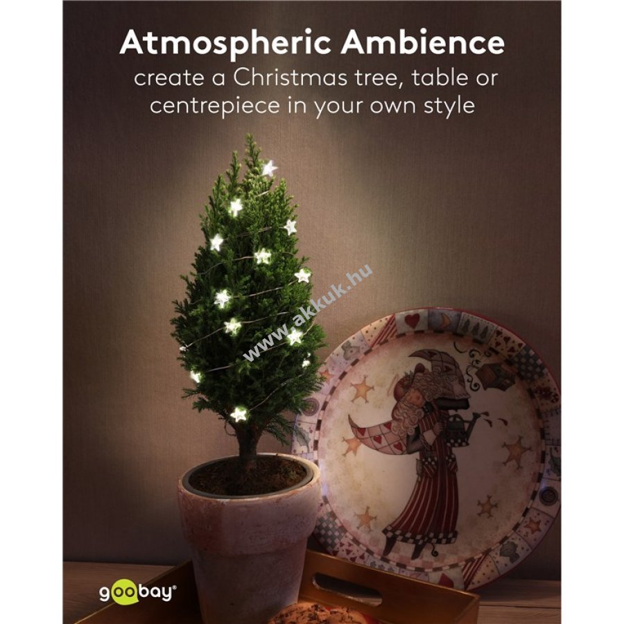 A fényfüzér elemmel működik és rugalmas fém drótjának köszönhetően könnyen formázható dísztárgyakba karácsonyra vagy esküvőre.