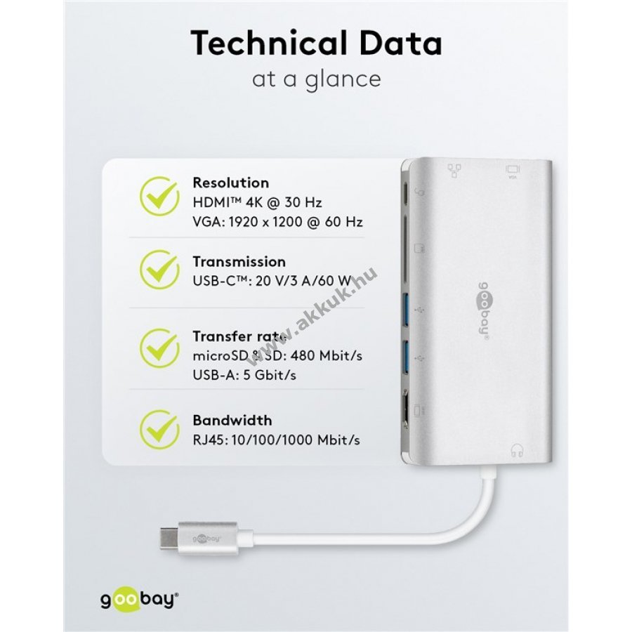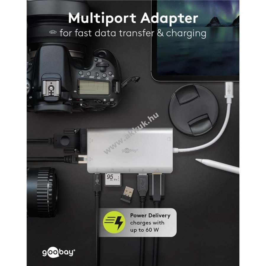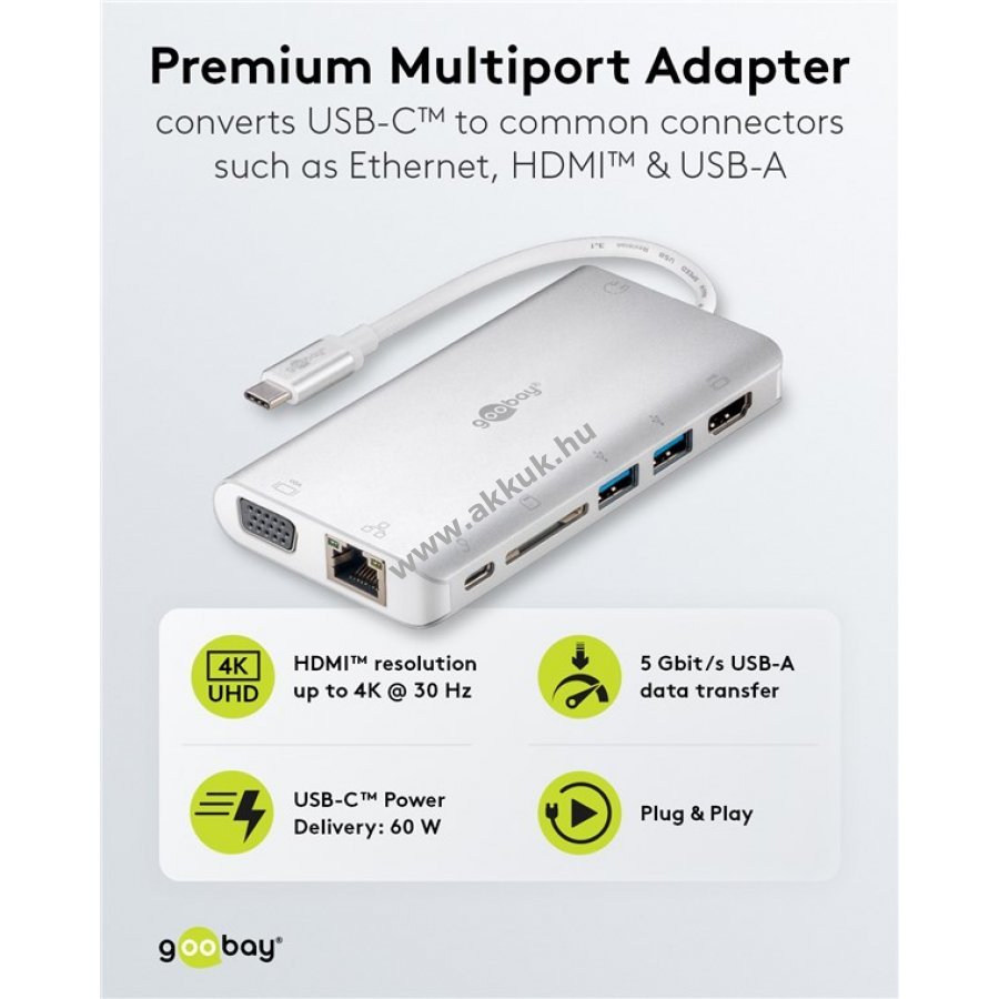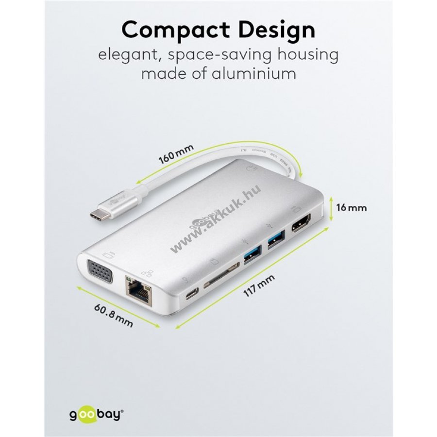 Ez az elegáns ezüst színű USB-C multiport adapter kompakt megoldás minden multimédiás alkalmazáshoz otthoni vagy irodai használatra. Többféle csatlakozóval biztosítja a kompatibilitást a leggyakoribb eszközökkel.
