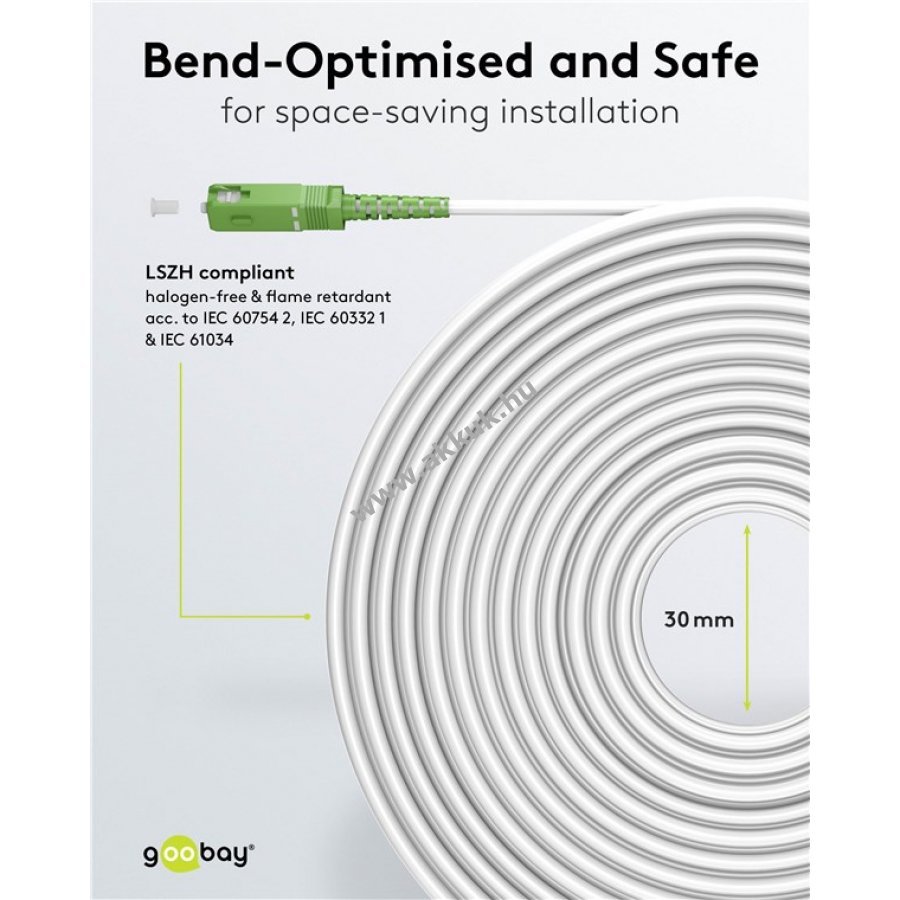 Az üvegszálas patchkábel alkalmas otthoni és ipari felhasználásra, kompatibilis a Telekom Deutschland Vodafone Deutsche Glasfaser FTTH kínálatával. A hajlításra optimalizált monomódusú (OS2) szál helytakarékos elhelyezést tesz lehetővé a jelveszteség növelése nélkül.